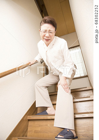 膝痛 シニア女性 屋外 階段
