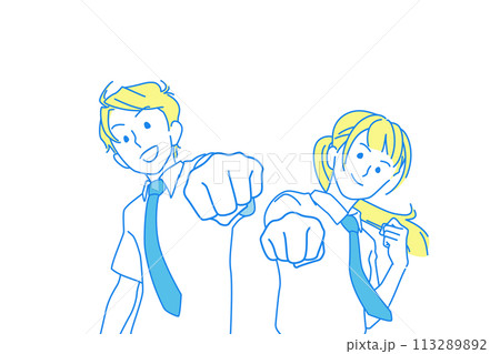 制服を着てファイティングポーズをする男子学生と女子学生のイメージイラスト
