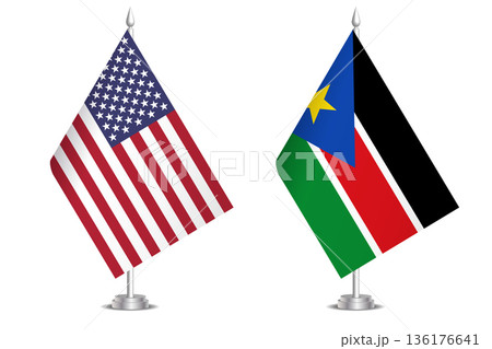 Flags of United States and South Sudan. The concept of partnership and joint action. Symbol of partnership, cooperation, international collaboration, peaceful negotiations, alliance, bilateral