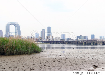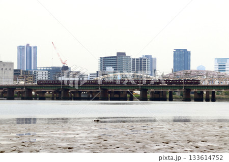 淀川河川公園から望む阪急電車(大阪府大阪市淀川区)