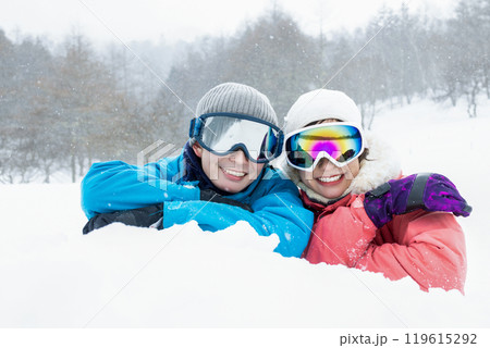 冬山を楽しむカップル