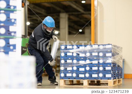 冷蔵倉庫内で作業をする男性