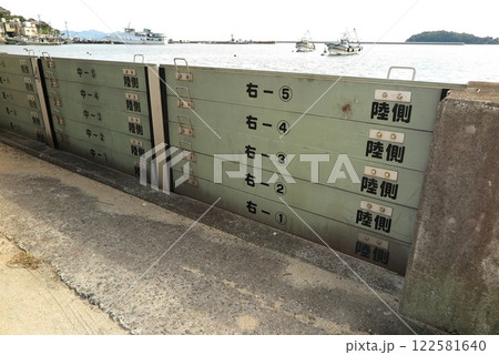 港の防波堤に設けられた、脱着式の防潮板