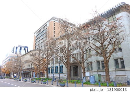 神奈川県横浜市、古い建物が建ち並ぶ日本大通の風景