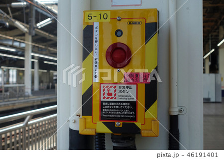 【交通イメージ】新幹線ホームの非常停止ボタン