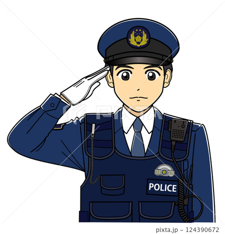 敬礼する防刃ベストを着た男性警察官3種セット(制帽)