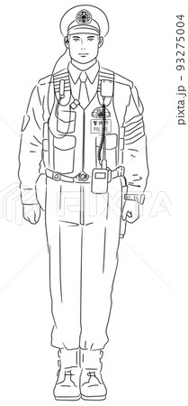 敬礼する防刃ベスト着用の活動帽の男性警察官3種セット