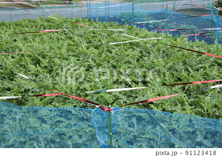 鳥よけテープ スイカの栽培