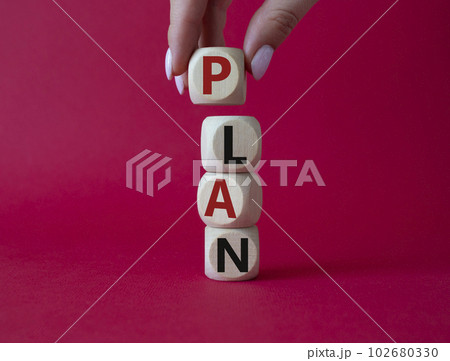 plan background. hand puts out cubes with letters plan. Cubes with text plan. to do list and plan. Development to success and motivation. copy space