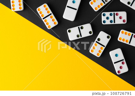 Domino tiles on black and yellow background