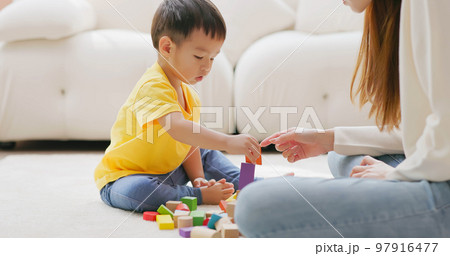 Family playing with building blocks