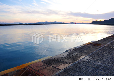 兵庫県南あわじ市 夕暮れの阿万海岸から徳島・鳴門方面を望む