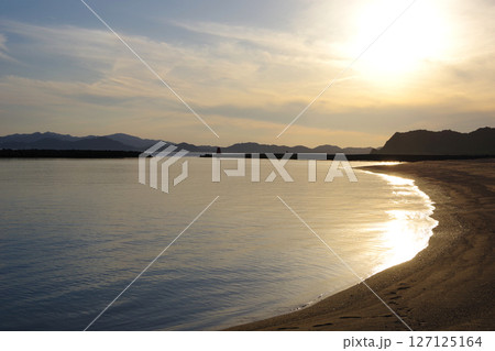 兵庫県南あわじ市 夕陽に照らされた阿万海岸海水浴場