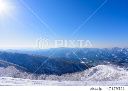 遠く岩木山が望める快晴の森吉山冬景色 秋田県