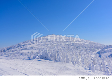 遠く秋田駒ヶ岳が望める快晴の森吉山樹氷群 秋田県