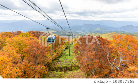 美しい紅葉の絶景を進む 阿仁スキー場ゴンドラ 秋田県森吉山