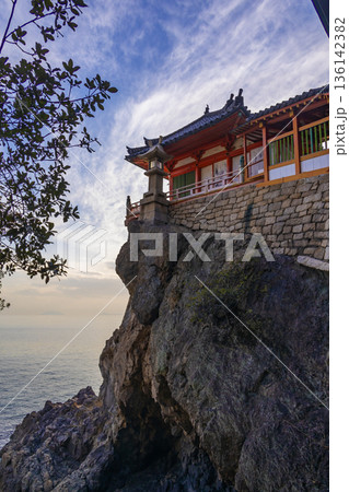 阿伏兎岬の崖上に鎮座する阿伏兎観音(広島県福山市)