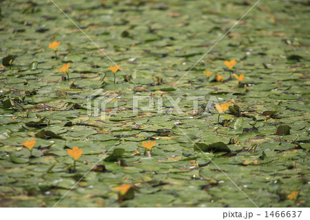 自然 植物 アサザ、夏に黄色の綺麗な花を咲かせます。朝開花して夕方にはしぼむ一日花です②