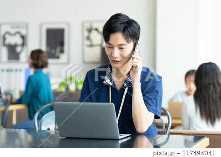 オフィスで働く若い男性