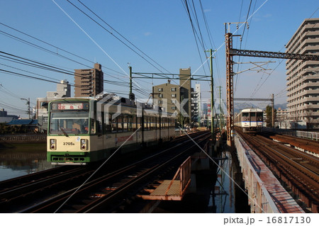 山陽本線と並行する広島電鉄宮島線3700形