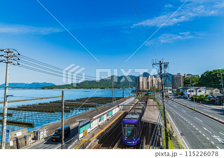 海岸を走る広島電鉄、路面電車