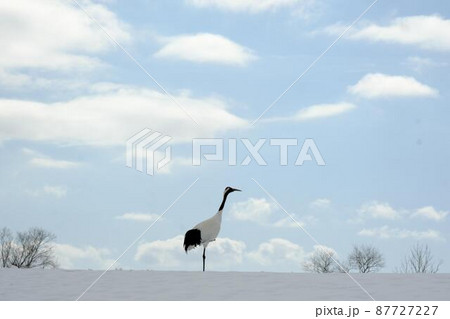 雪原の中の丹頂鶴 北海道阿寒郡鶴居村