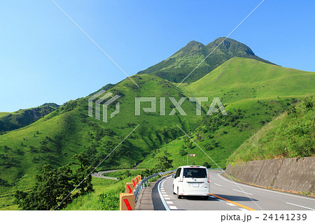 大分県 くじゅう連山を見ながら走る新緑のやまなみハイウェイのドライブイメージ