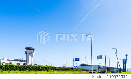青空を背景に空港周辺風景 (阿蘇くまもと空港)