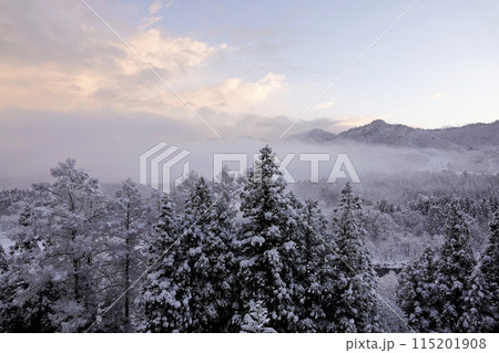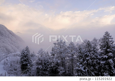 降雪の翌朝 快晴の山間部 風景