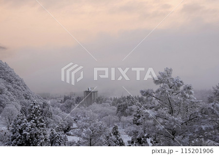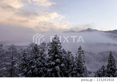 山間部 降り続く雪 合間の幻想的な雪景色