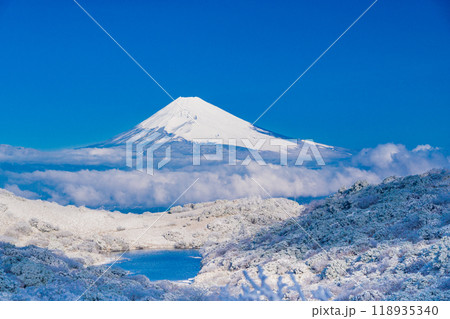 (静岡県)雪化粧した伊豆スカイライン池の向展望台、富士山