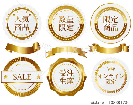高級感のある販促エンブレム6種セット ホワイト&ゴールド