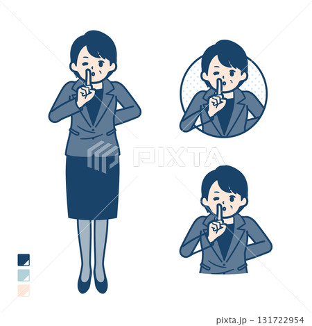 インカムをつけたビジネス女性が指でシーとしているイラスト