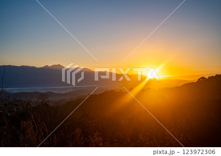 陣ノ岡から見る霧島連山の朝日(湧水町)