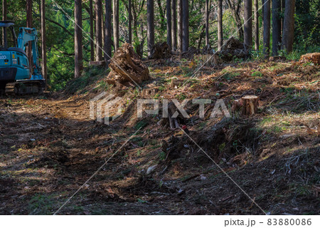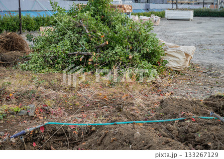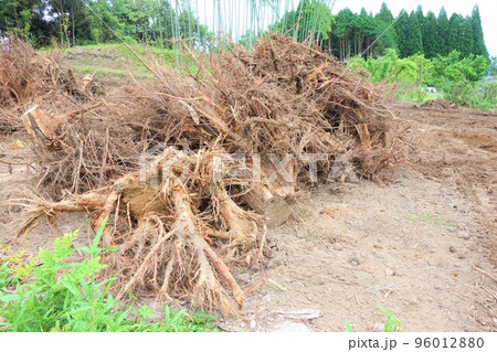 抜根作業を行った後の木の根っこ 産業廃棄物