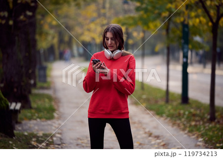Athletic young woman taking a breath and relaxing after jogging and stretching. Woman Training and Workout Exercises On Street.