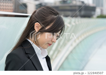 都会の真ん中で落ち込むビジネスウーマン