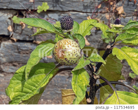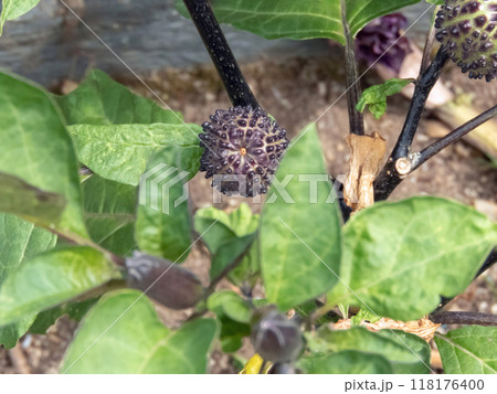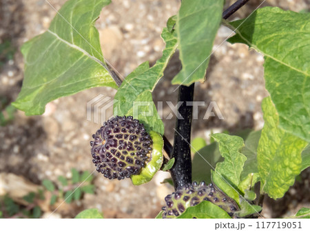 Datura metel,Hindu Datura, metel,Indian thornapple,thorn apple,devil's trumpet or angel's trumpet exotic fruits covered with conical warts.