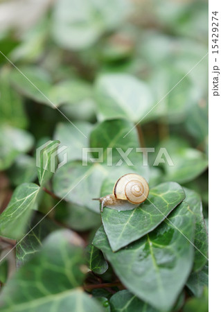 カタツムリ、葉の上、梅雨、5月