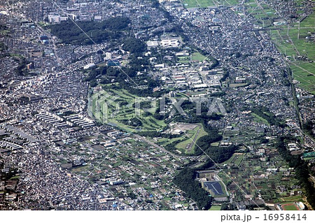 東京都町田市上空から望む神奈川県座間市の米陸軍キャンプ座間