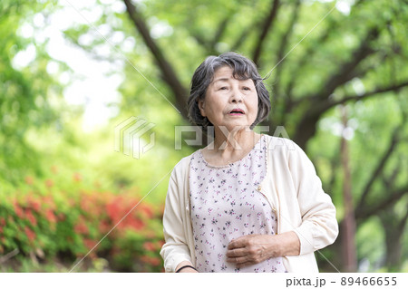 無表情でたたずむ高齢者女性