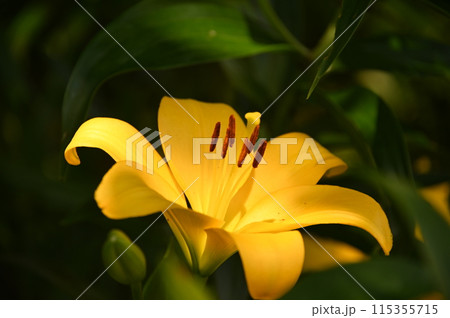 スポットライトを浴びた百合の花