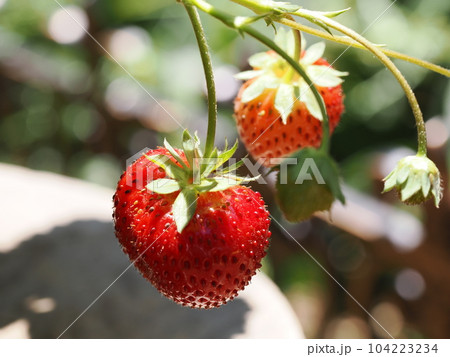 陽射しを浴びるイチゴの画像素材(写真・イラスト) 1ページ目