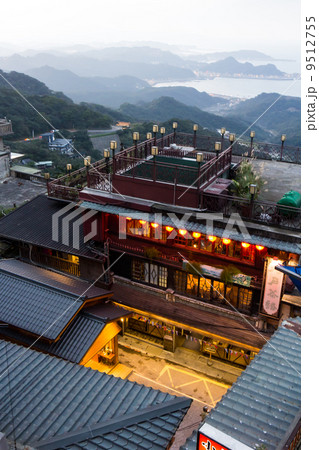 woman traveler visiting in Taiwan, female Tourist with backpack sightseeing at Jiufen Old Street village with Tea House background. Popular landmarks and attractions near Taipei City. Travel concept