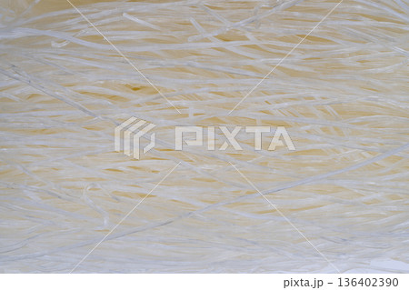 Elegant pattern of stacked clear rice noodles with studio lighting. Macro detail showcasing transparent rice noodles layered beneath neutral background for packaging design