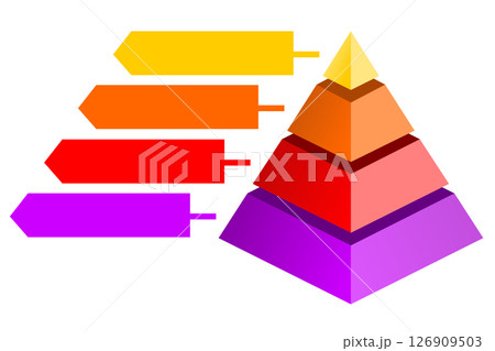 Infographic hierarchical statistical illustration of purple with orange with yellow and red triangle divided , Pyramid shape four layers for presenting business ideas or disparity and statistical