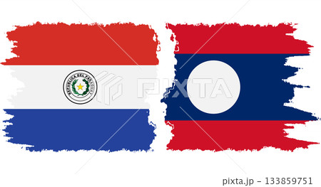 Laos and Paraguay grunge flags connection vector