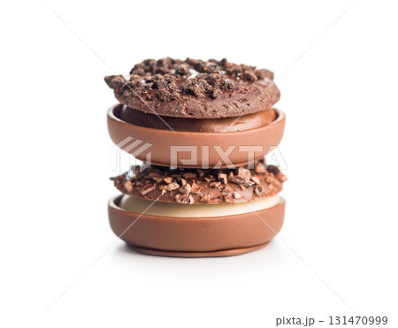Sweet chocolate pralines. Chocolate candies isolated on white background.