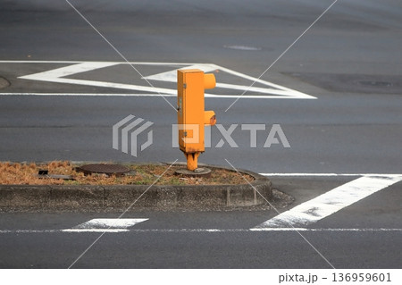 Plastic traffic sign in the shape of a cone on a tile pavement