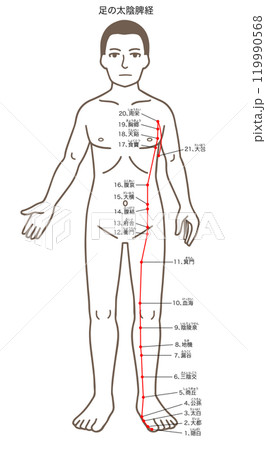 鍼灸の経穴、足の太陰脾経、ツボのイラスト